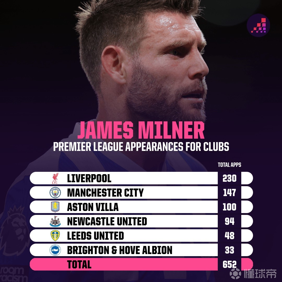 只差一场,米尔纳将追平巴里保持的英超历史出场纪录