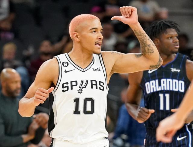 马刺在文班亚马带领下,本赛季高歌猛进,目前以37胜16负排名西部第2。全队上下喜气洋洋,唯独索汉黯然神伤。这位2022年首轮第9顺位新秀,前3个赛季一直保持得分11+篮板5+助攻2+的水准,但是本赛季突然降至4.1分,降幅不可谓不大;三分命中率从30.8%降到25.7%,场均也仅收获2.6个篮板1次助攻。