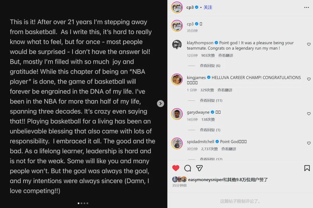 作为"NBA球员"的这一篇章已经结束,但篮球这项运动,早已刻进我的DNA,永远不会离开我。