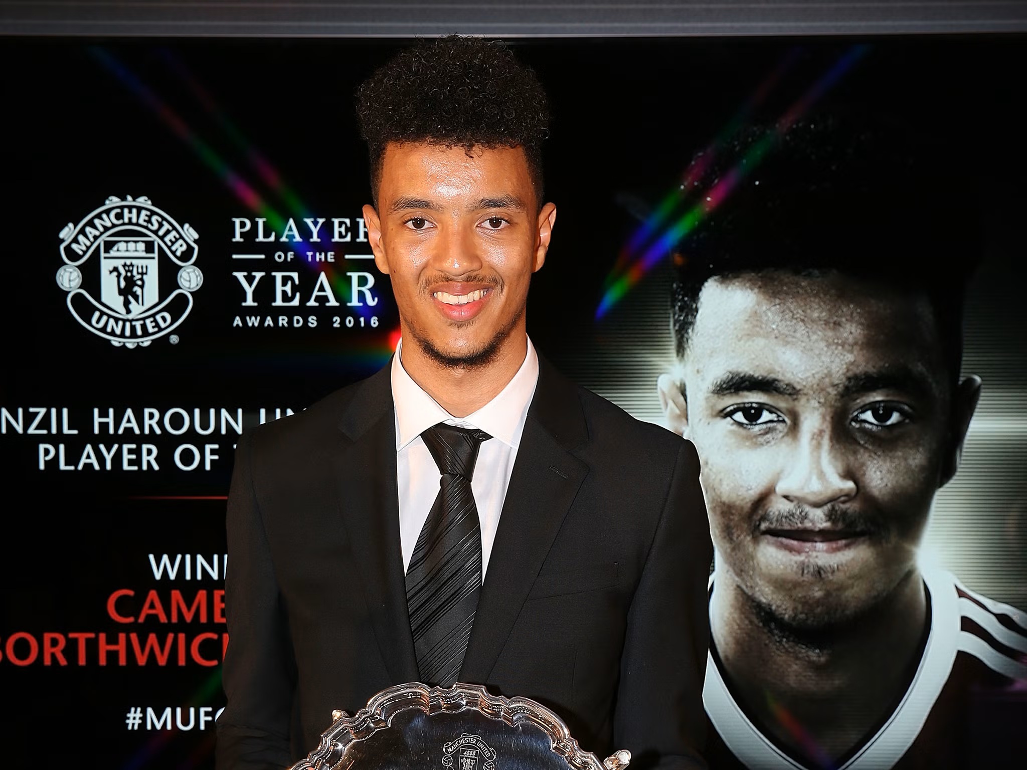 当时,赢得曼联队内U18最佳球员的拉什福德就站在他的身边。