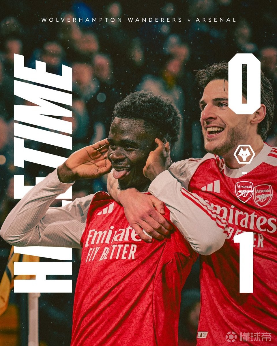 半场战报:阿森纳1-0狼队,萨卡破门,马杜埃凯屡造险