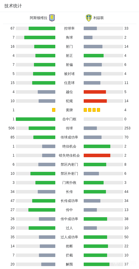 北京时间2月21日英格兰足球顶级联赛第27轮,阿斯顿维拉主场对阵利兹联。施塔赫任意球率先破门,亚伯拉罕比赛尾声扳平。最终比分阿斯顿维拉1-1利兹联。
