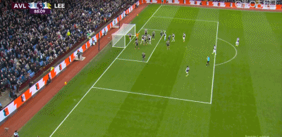 第45分钟,阿马杜-奥纳纳射门被挡,之后沃特金斯未能完成补射