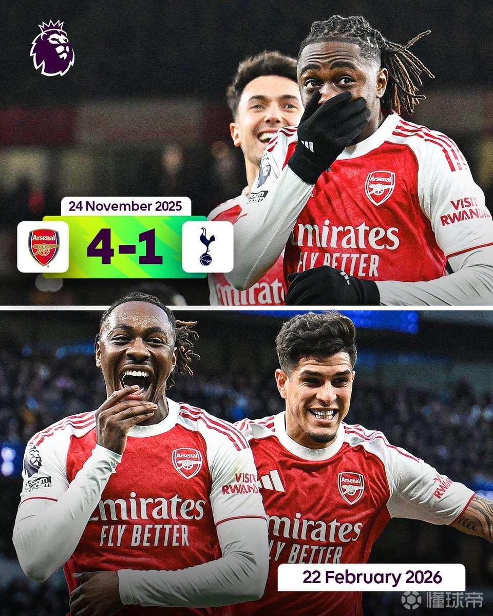 本赛季英超第12轮,埃泽上演帽子戏法,帮助阿森纳主场4-1击败热刺。