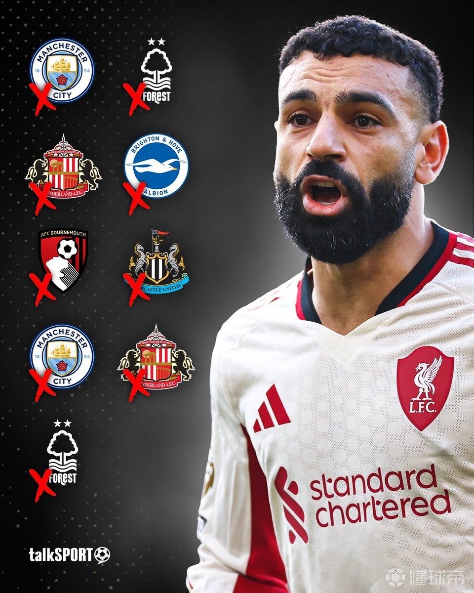 萨拉赫连续9场英超比赛未能取得进球,为职业生涯首次