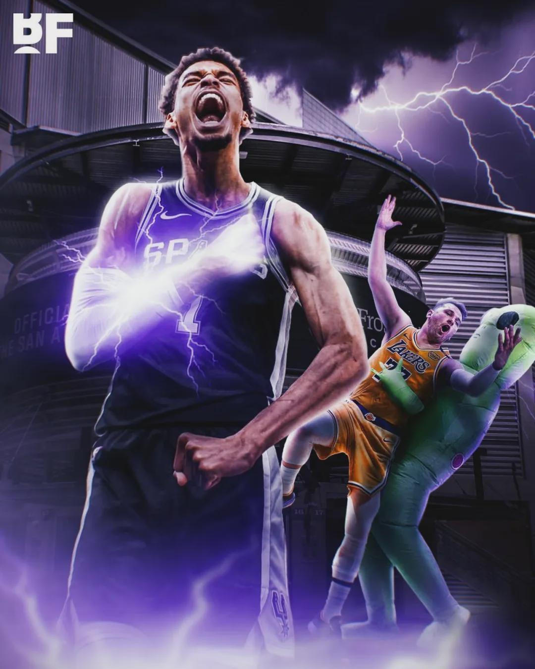 湖人进攻还算不错,首节得到30分,但马刺全队单节轰下47分。文班亚马第一节只打了8分钟,9投8中狂轰25分3篮板1抢断1盖帽,一个人打爆湖人全队。第二节海斯多次在篮下单挑文班亚马,一个人连拿7分,随后湖人连续失误。