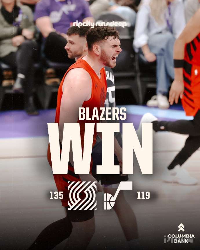 开拓者(27-29):霍勒迪31分9板7助、克林根23分18板7助3帽、格兰特18分3板2帽、亨德森15分1板4助、卡马拉14分8板3助2断、克雷伊奇11分5板2助、乐福11分2助、西索科8分4板1助2断、吕佩尔2分4板、杨瀚森2分