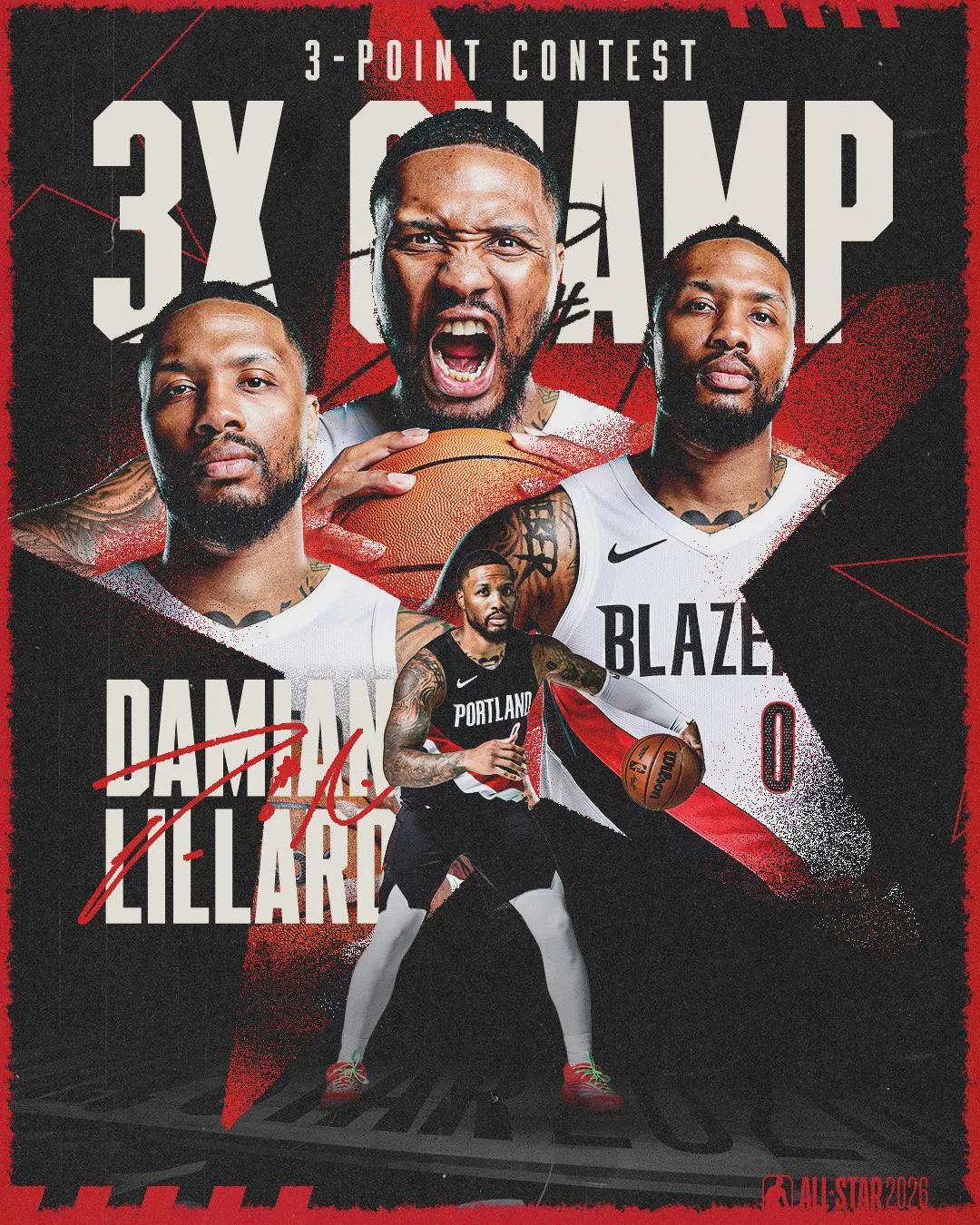 布克决赛压轴出场,最后的花球点只有5中2,砍下27分遗憾落败。恭喜利拉德拿到三分大赛第三冠(2023、2024和2026),成为三分大赛历史第三人。所以说,常规赛三分命中率和三分大赛是两码事,利拉德不打常规赛也能夺冠。