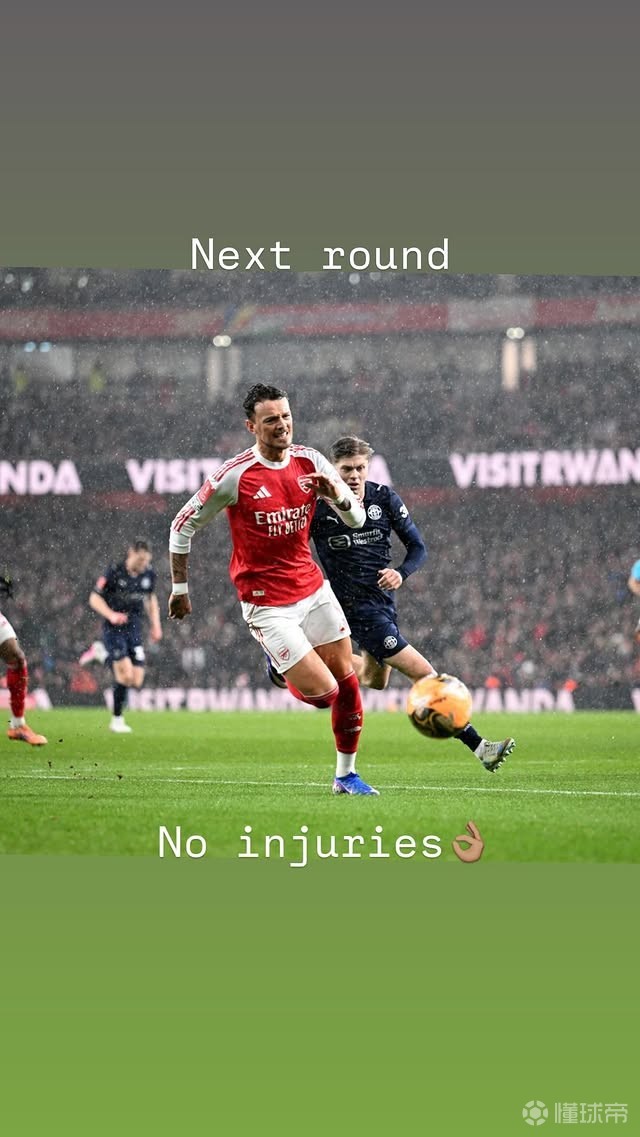 比赛结束之后,本-怀特在个人社交媒体上晒出了自己比赛时的照片,并且还贴心地表示“晋级下一轮,我没受伤 体育 PP体育 聚力体st育 英超直播 西甲 亚冠直播 欧冠直播 德甲直播 欧联杯 CBA 篮球直播 WWE直播 UFC直播 体育直播