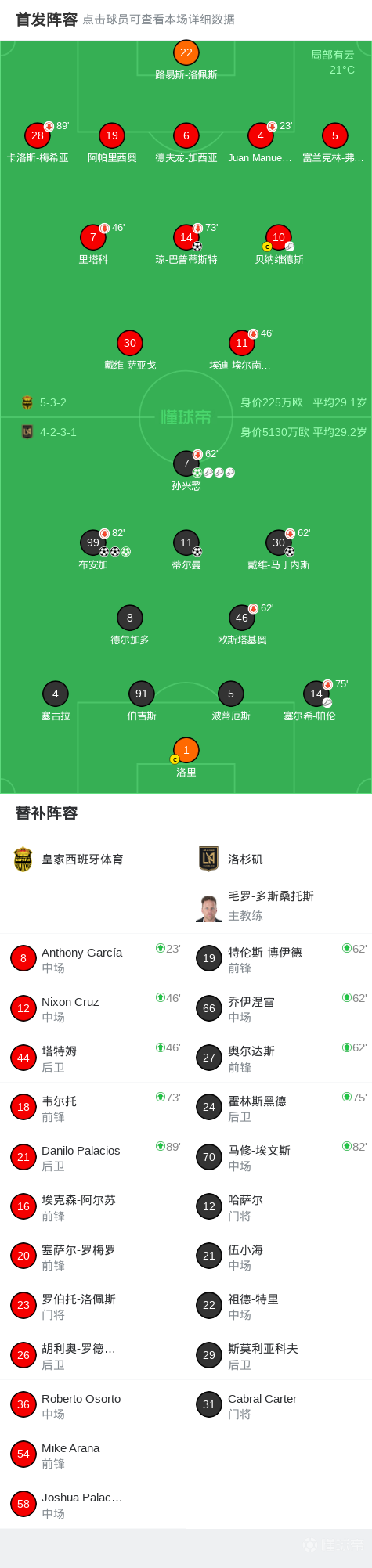 第11分钟,洛杉矶球员孙兴慜助攻戴维-马丁内斯打入一球。