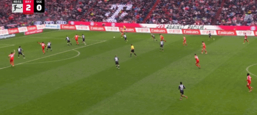 第20分钟,斯塔尼希奇摆渡,凯恩头球破门,拜仁2-0法兰克福