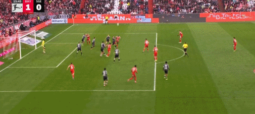 第16分钟,帕夫洛维奇抽射,桑托斯扑救失误,拜仁1-0法兰克福