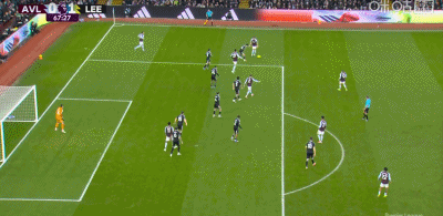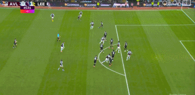 第45分钟,阿马杜-奥纳纳射门被挡,之后沃特金斯未能完成补射