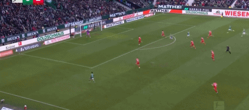 第22分钟,卡尔禁区内连续过人后造点,凯恩主罚命中,拜仁1-0不莱梅